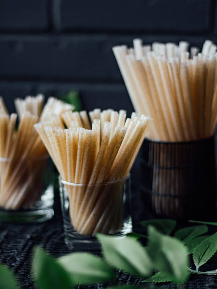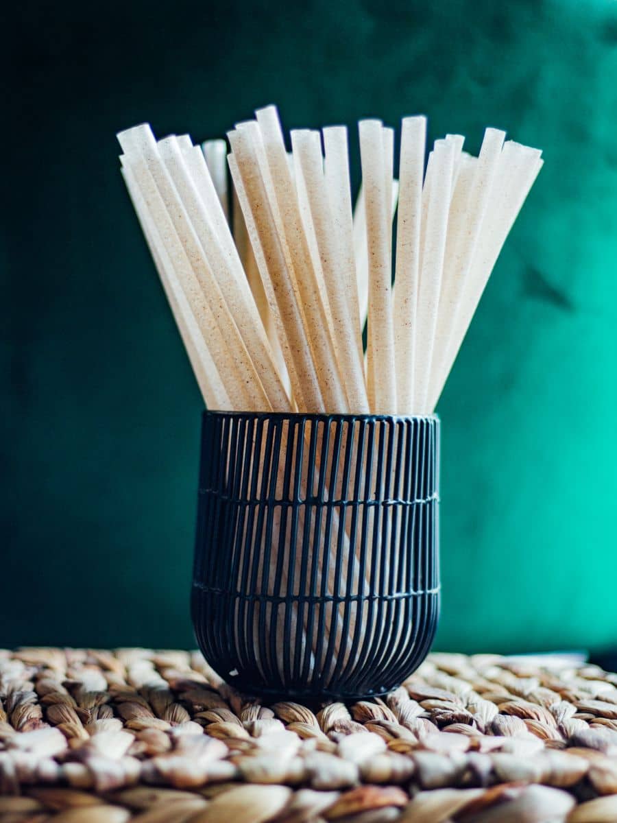 Pailles véganes, non toxiques et sans plastique. Fabriquées à partir de sources renouvelables de cellulose et d’agave. Aucune nouvelle plante n’a besoin d’être cultivée ou d’arbres coupés pour produire nos pailles!